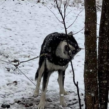 Trapper is a working Alaskan Husky from distance racing and traditional freight lines. He is owned and loved by Sage Mountain Sled Dogs.